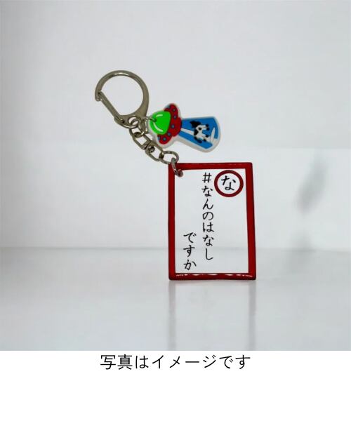 「なんのはなしですか」待望のかるた型キーホルダーです。「なんのはなしですか」の歴史を語る上で、欠かせないアイテムです。「なんのはなしですか」が、まだ文章だけの世界だった時、はじめて視覚的に「なんのはなしですか」を表現したアイテムになります。視覚的な分かりやすさと、昔から日本人が遊んでいるかるたという娯楽が「なんのはなしですか」の世界観と一致し、さらにその世界を広げてくれました。こちら、ハンドメイドの作品になります。「なんのはなしですか」の歴史と重みを感じることが出来る逸品ですが、付けてみても「なんのはなし」なのかは、もちろん分からない素敵なアイテムです。