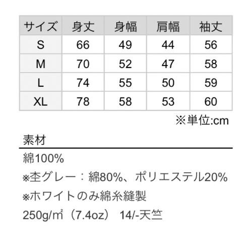 〈身丈〉〈身幅〉〈肩幅〉は、当店で販売している半袖Tシャツと同サイズです。