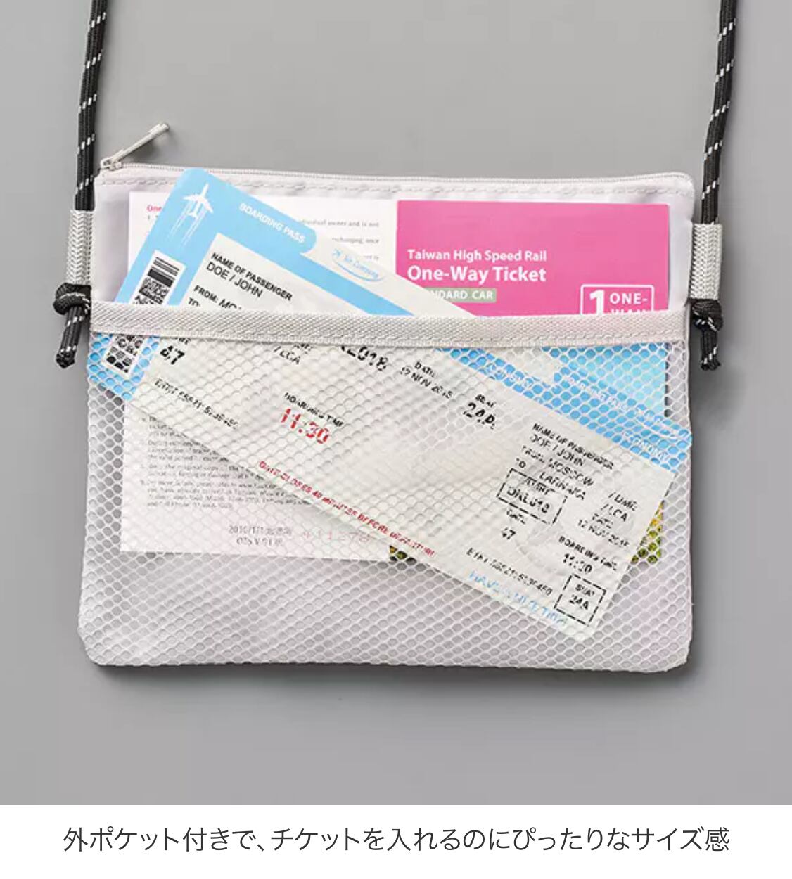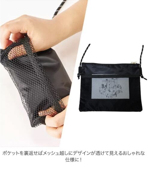 出し入れの頻度が高い小物の収納に便利な メッシュ仕様の外ポケット付きサコッシュです。